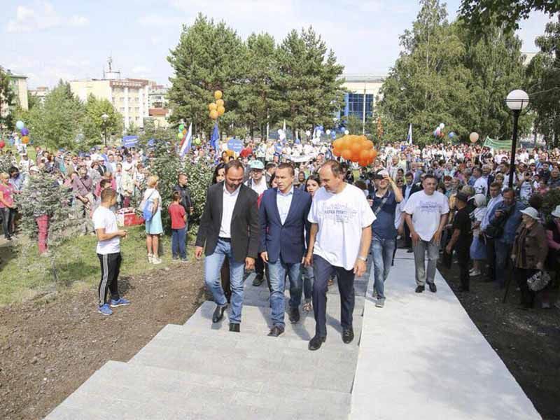 В микрорайоне открыли Памятный знак, высадили еловую аллею, состоялось праздничное шествие и концерт.