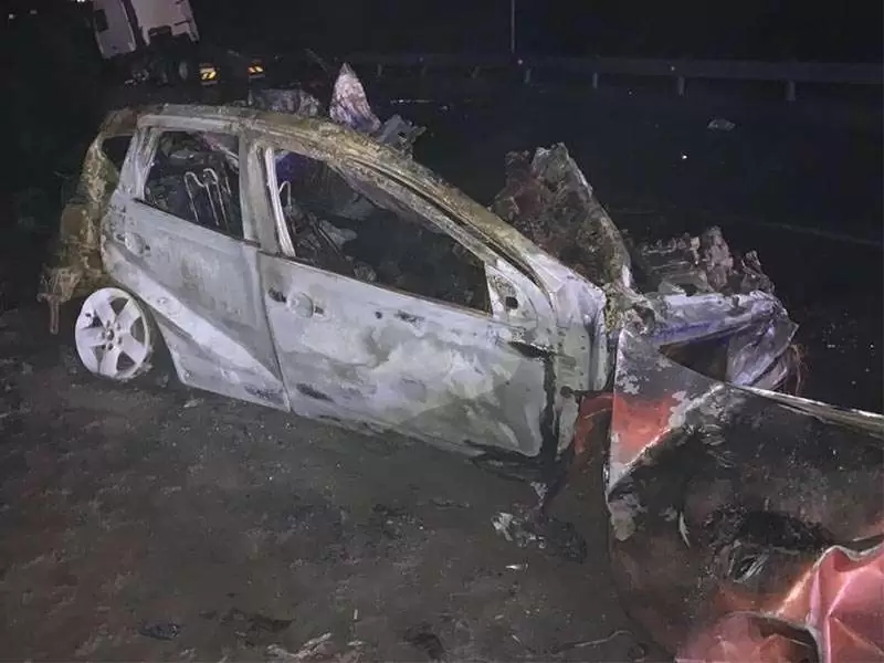 После столкновения легковушка загорелась.