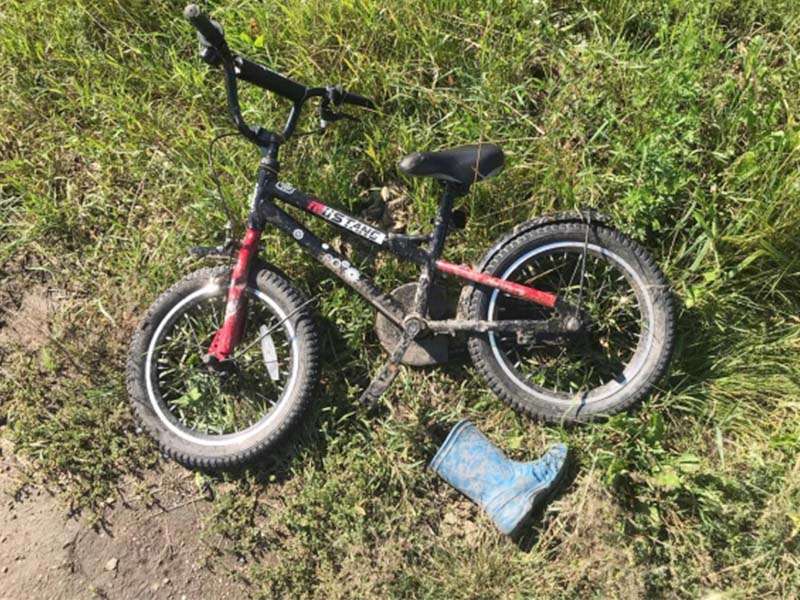 Ребенок пересекал дорогу на велосипеде.