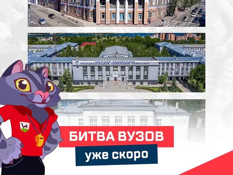 «Битва вузов» пройдет при поддержке управления по физической культуре, спорту и молодежной политике администрации Иркутска. Главный спонсор – «Семечки от Фенечки», также партнерами соревнований выступят скалодром «Панорама», клуб стрельбы из лука «Сармат», лазертаг «БАЗА38», фитнес-клуб World Class, центр развлечений EXTRAVERT. Цель соревнований – вовлечение студентов и преподавателей в спортивную жизнь города, укрепление дружеских связей между вузами, популяризация здорового образа жизни среди молодежи.