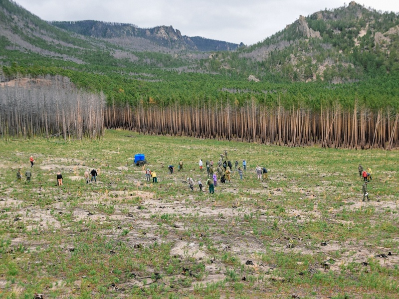 На территории Приабайкальскойго национального парка в бухте Песчаная прошла акция по лесовосстановлению. Активисты высадили 500 молодых лиственниц, 1 400 сосен и 100 кедров. Об этом сообщается «Вконтакте» нацпарка.