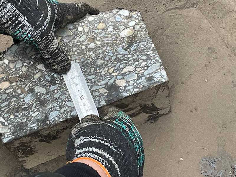 «На улице Бочкина верхний слой уложен из асфальта типа Б. По проекту его толщина должна быть пять сантиметров. Мы видим, что она больше проектных значений. В одном месте, где взяли вырубку, – семь сантиметров, в другом – 5,9 сантиметра. Все отобранные образцы отвезем в лабораторию», – рассказал сотрудник организации, осуществляющей строительный контроль на объекте.
