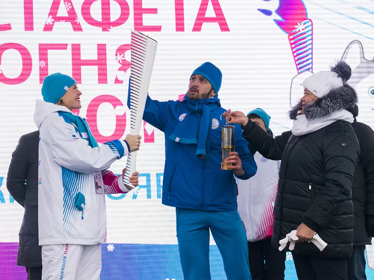 Иркутск стал первым городом Сибирского федерального округа, куда прибыл огонь XXIX Всемирной зимней Универсиады. В субботу, 1 декабря, его встретили у Московских ворот на берегу Ангары. Отсюда стартовала эстафета, на протяжении которой огонь пронесли 25 факелоносцев. Ее маршрут протяженностью более 3,5 километра пролегал по историческому центру города. Финишной точкой стала площадь перед Дворцом спорта «Труд», где произошло торжественное зажжение чаши огня Универсиады.